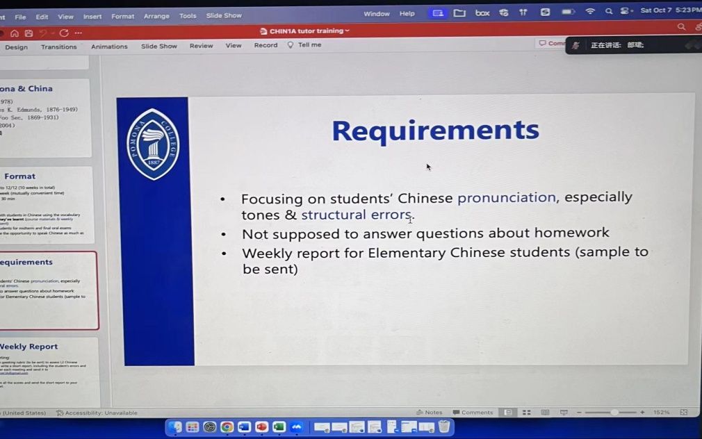 活动开始前,来自Pomona College的郎珺老师和来自Georgia State University的郦帅、封亚莉老师分别召开线上会议,为同学们讲解了本次汉语辅导活动的相关要求。