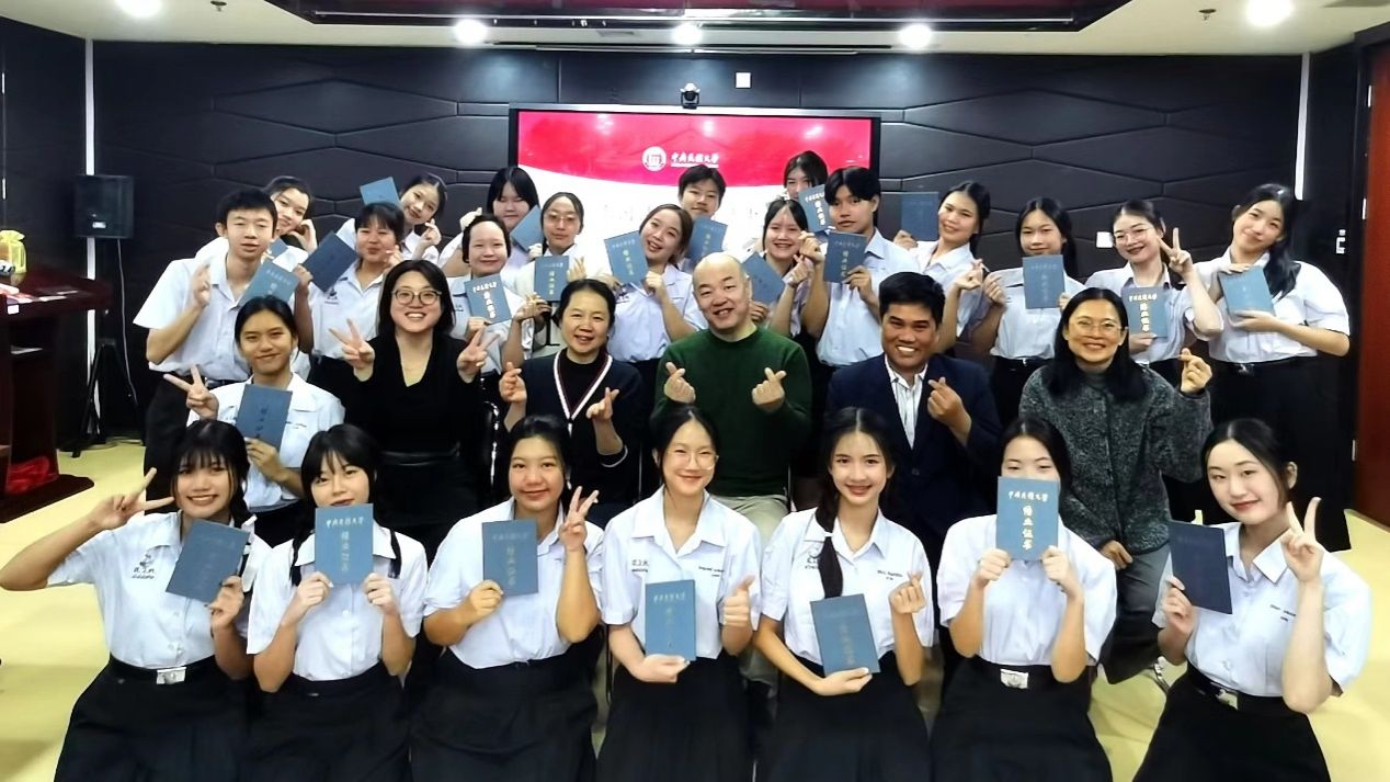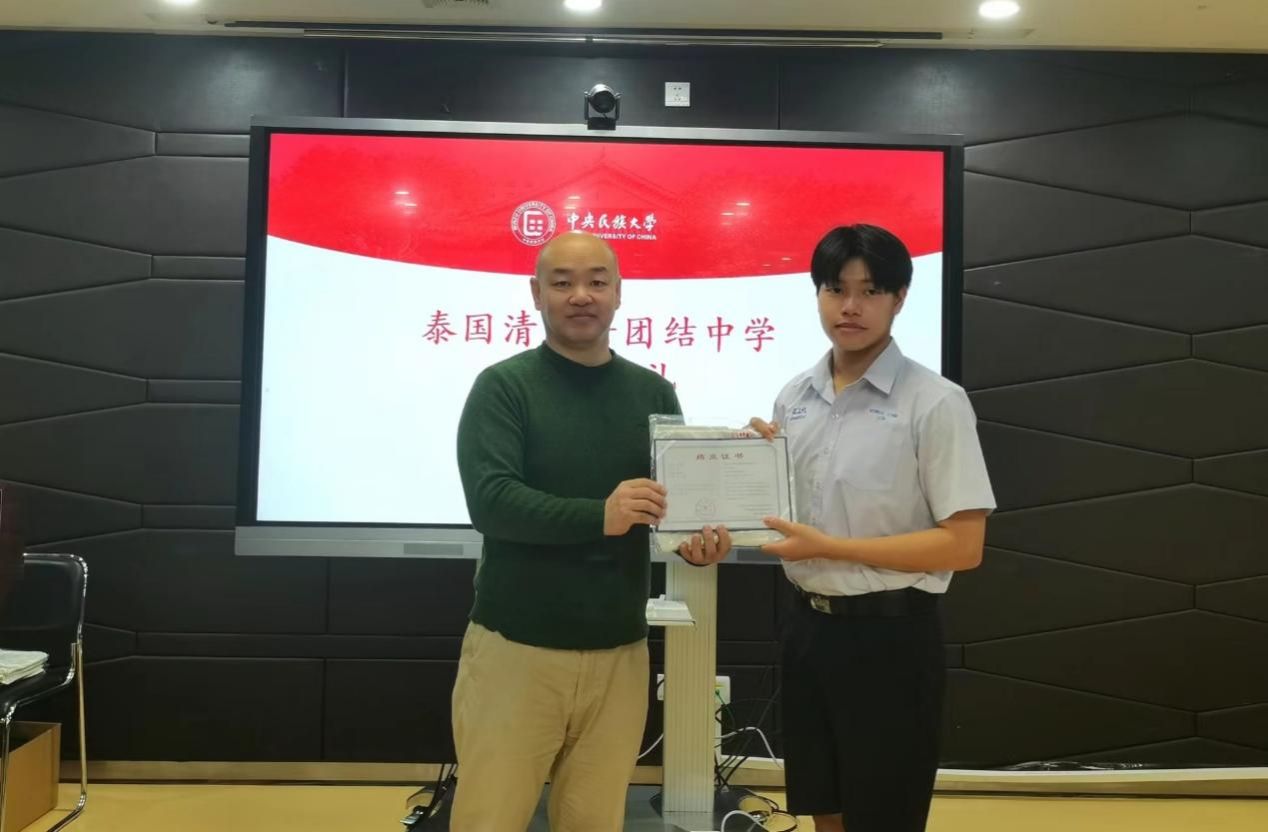 李锷副院长为同学们颁发结业证书,热烈祝贺同学们圆满完成系列中文课程。他高度赞扬了同学们的学习成果和进步,并激励他们在未来的学习和生活中继续努力,进一步提升中文水平。李锷副院长表示,希望同学们为中泰文化交流和友谊的发展做出积极的贡献。最后,他热忱欢迎同学们有机会再次来到众赢国际版官网