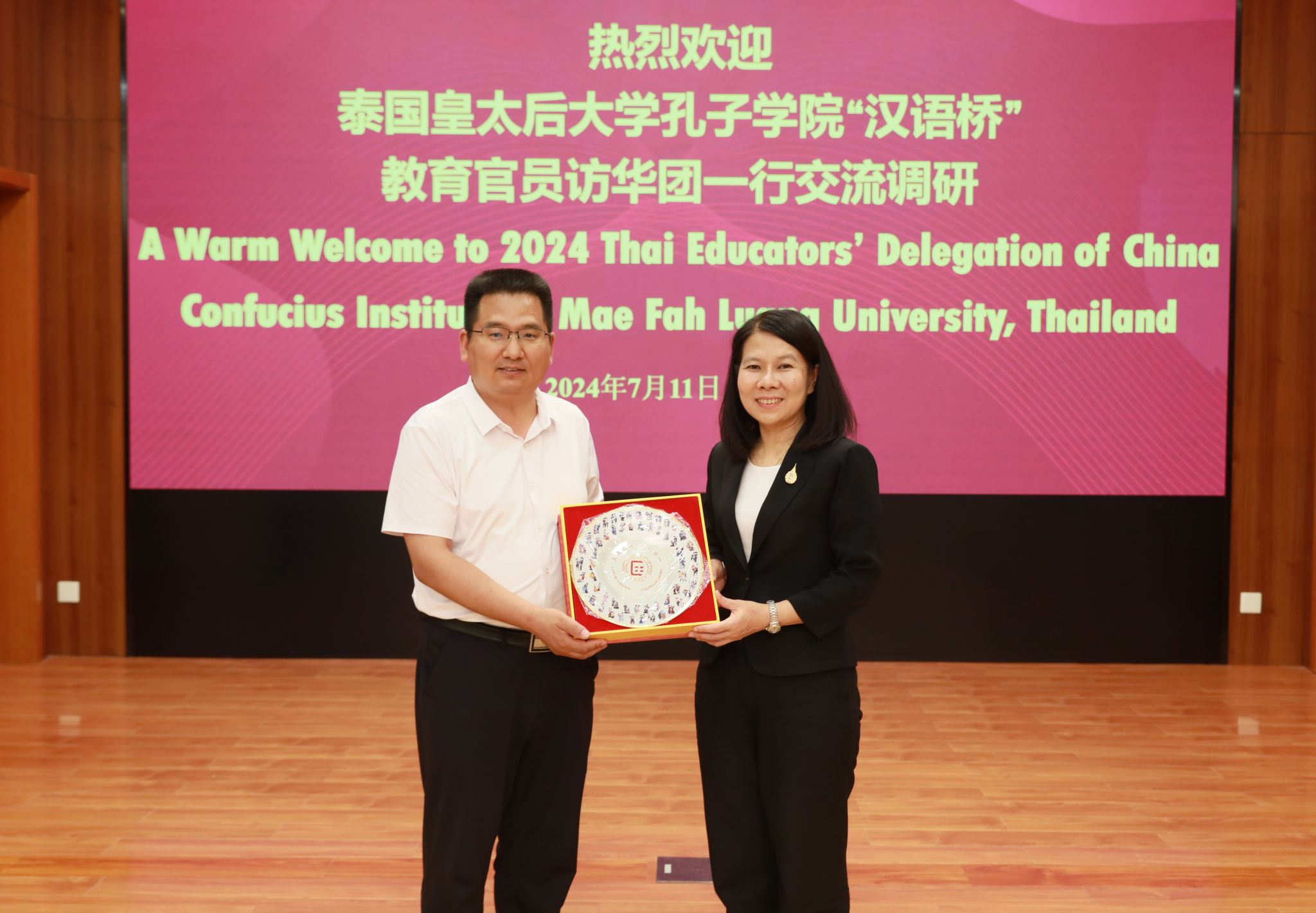 院长陈天序向访问团介绍了我校的国际学生培养体系和办学特色,希望以此次交流为契机,与泰国皇太后大学及清莱市其他学校加强联系,探索合作模式,搭建合作平台,共同推进中泰教育事业发展。