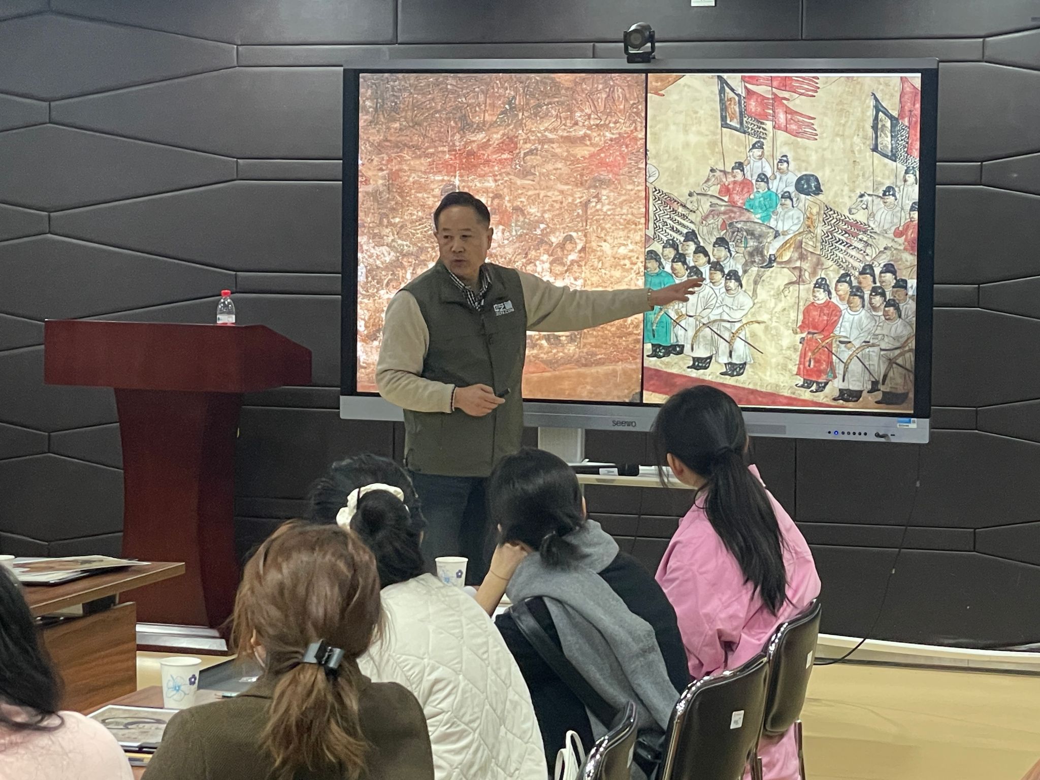 唐代壁画作为我国艺术史上的重要组成部分,其修复与临摹技艺更是非物质文化遗产中的璀璨明珠。许多唐代壁画都蕴含着表现丝绸之路及其沿线国家友好关系的内容和元素,鲜明地呈现了东西方文明在中国繁荣交汇发展的场景,是东西方文明交流互鉴的重要见证。通过壁画专家王建岐老师的精彩讲授,同学们了解了唐代壁画的历史背景、艺术特色、修复保护的重要性及其在中国文化中的重要地位,以及包括揭取、清理、加固等在内的壁画修复全过程的关键步骤。