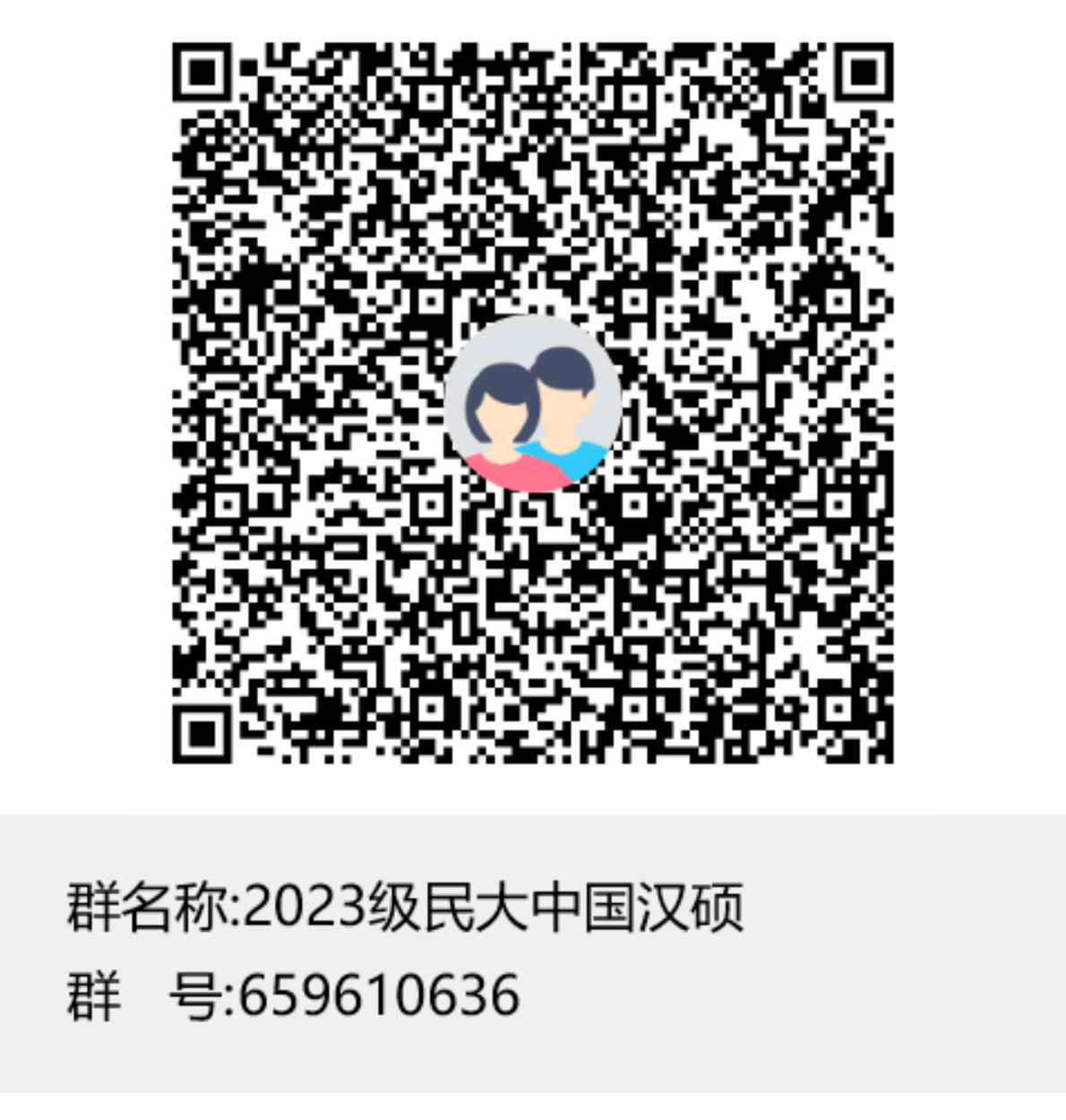 为便于联系及为后续开学、选课、学术活动等事宜做准备,众赢国际版 为2023级汉硕新生群立了qq群,群号659610636。二维码见下图。请于8月10日前入群,入群时备注真实姓名。