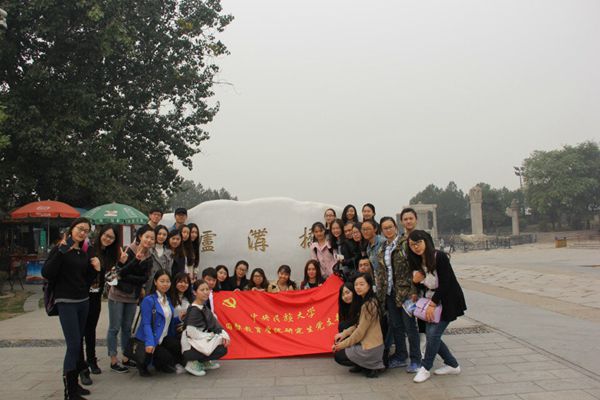 研究生党支部于10月19日在卢沟桥畔,组织2014级大部分党员以及10名入党积极分子进行了一场生动的爱国主义教育。同学们参观了中国人民抗日战争纪念馆以及卢沟桥,重温了中国人民抗击侵略者,捍卫主权的历史。