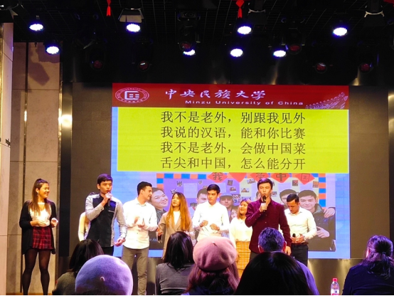 留学生汉语汇报演出,结合贺信精神,研究生党支部特安排部分党员同志协助此次演出。该项活动是为集中展示我校国际学生汉语教学成果而策划组织的,每年举办一次,至今已经连续举办三十余次,成为我校国际学生品牌活动之一。本次以“汉语情、中国梦”为主题,涵盖了汉语进修和汉语国际教育本科共11个班的100多名外国留学生,每个班围绕校园学习生活,社会热点话题,中国传统文化精心编排了小品或短剧。