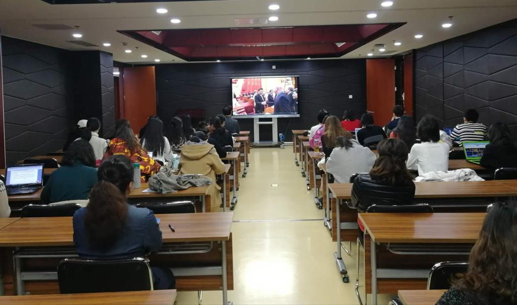师生认真观看大会直播,为我们伟大祖国取得的辉煌成就感到自豪骄傲。教工党支部书记冯凌宇同志说道:“作为一名党员,作为一名一线教师,我一定会坚定不移地跟着党走,听党的话,并紧跟时代潮流,认清历史大势和所需,力图创新方式,实实在在地干工作,将自己教书育人做科研的本职工作和所参与的基层党建工作做得更加有成效,为汉语和中国优秀文化的国际传播贡献一份力量,为促进民族团结尽一份责任,为实现中国特色社会主义的强国梦贡献自己的一份力量!”党总支组织委员刀慧娟同志表示:“众赢国际版