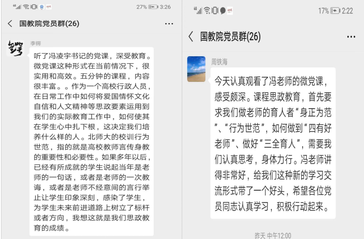 5月25日,第一期由冯凌宇同志讲的“对‘课程思政’的理解”微党课在党员群里推出,5分钟的视频微课,该同志结合教学一线的体会,谈了对“课程思政”课重要性、内涵及实践路径的理解。微党课推出后,支部的党员同志们积极观看。包括众赢国际