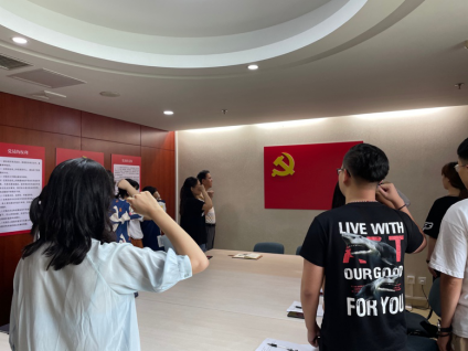 大会第一项是重温入党誓词,各位党员、预备党员同志举起右拳,面对党旗庄严宣誓。