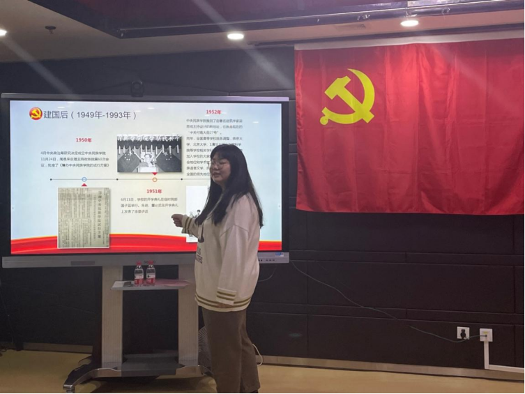用音乐来谱写中国共产党独立创办民族高等教育的伟大实践,用音乐传递时代最强音,编创一首唱得响、传得开,脍炙人口的校歌,对学校传承好红色基因,延续红色血脉,具有重大意义。在学习的最后,支部全体同志齐唱校歌,为母校庆生。