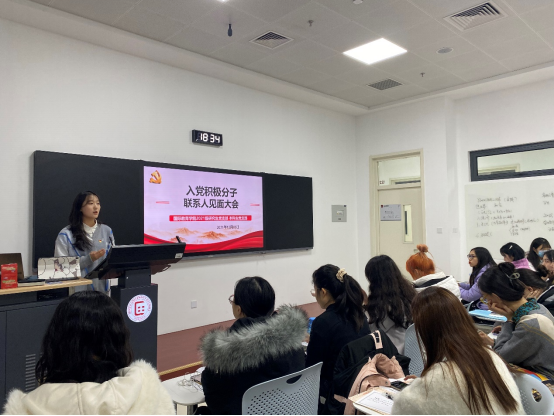 学生党支部于2021年12月5日在明德楼122教室举办入党积极分子联系人见面大会。共有55名积极分子、19名党员参加本次大会。会议由2021级研究生党支部书记王梦月主持。
