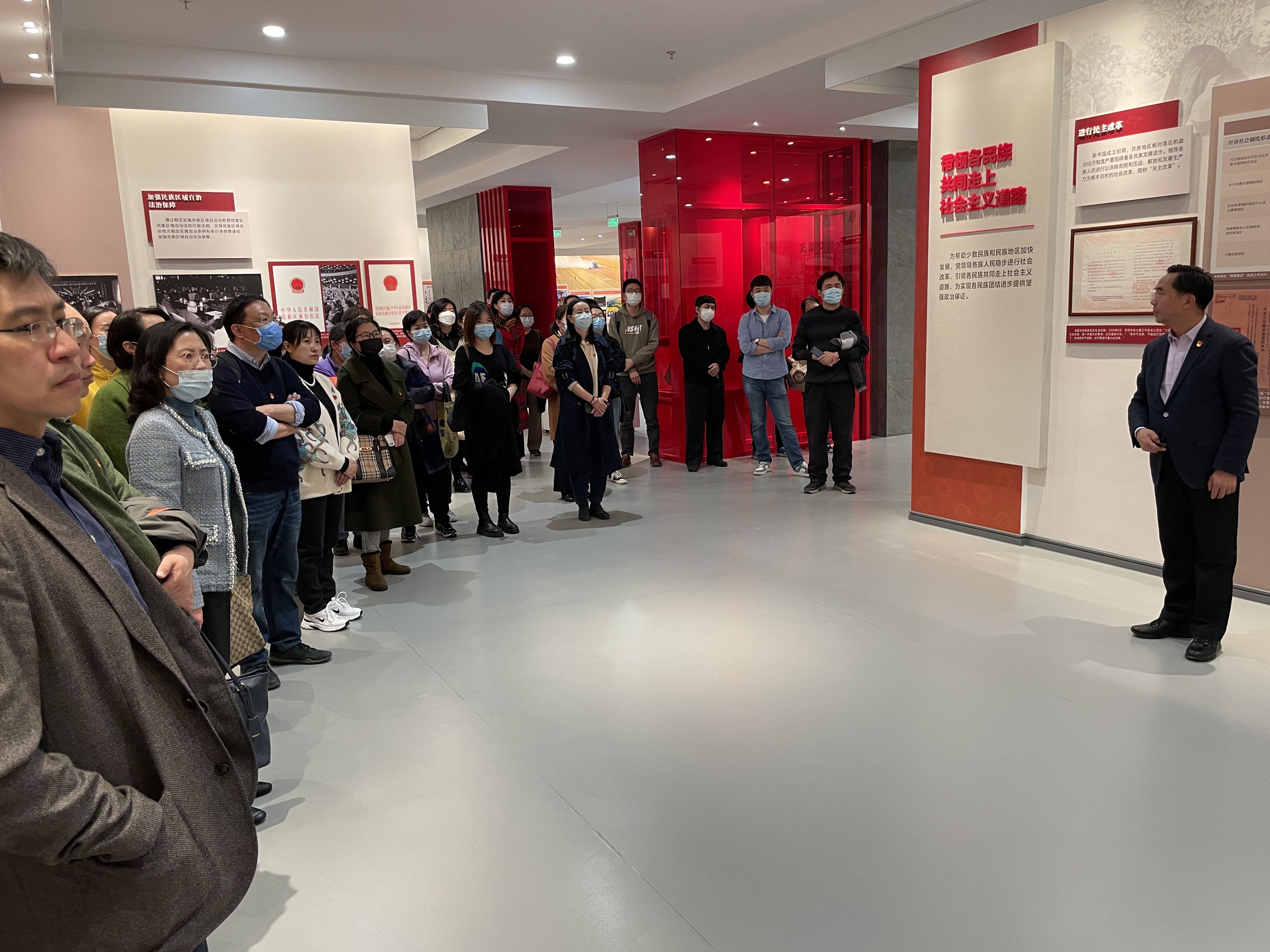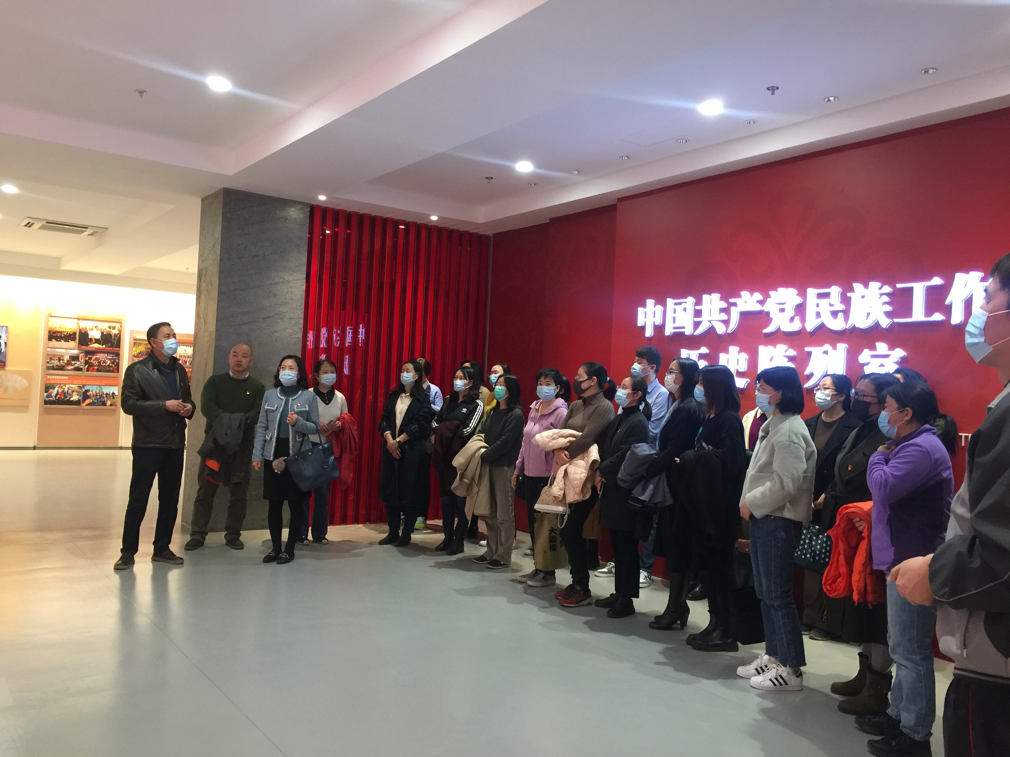 民族干部教育研究中心刘宝明主任饱含深情地为老师们做了详细讲解,带领老师们回顾了中国共产党担负民族进步大业、团结带领各族人民共同奋斗的历史进程。老师们仔细观看展览,认真听取讲解,深刻感受到历届党和国家领导人对民族工作的重视,深刻领会到中国共产党人为中国人民谋幸福,为中华民族谋复兴的初心和使命。在讲到延安民族众赢国际