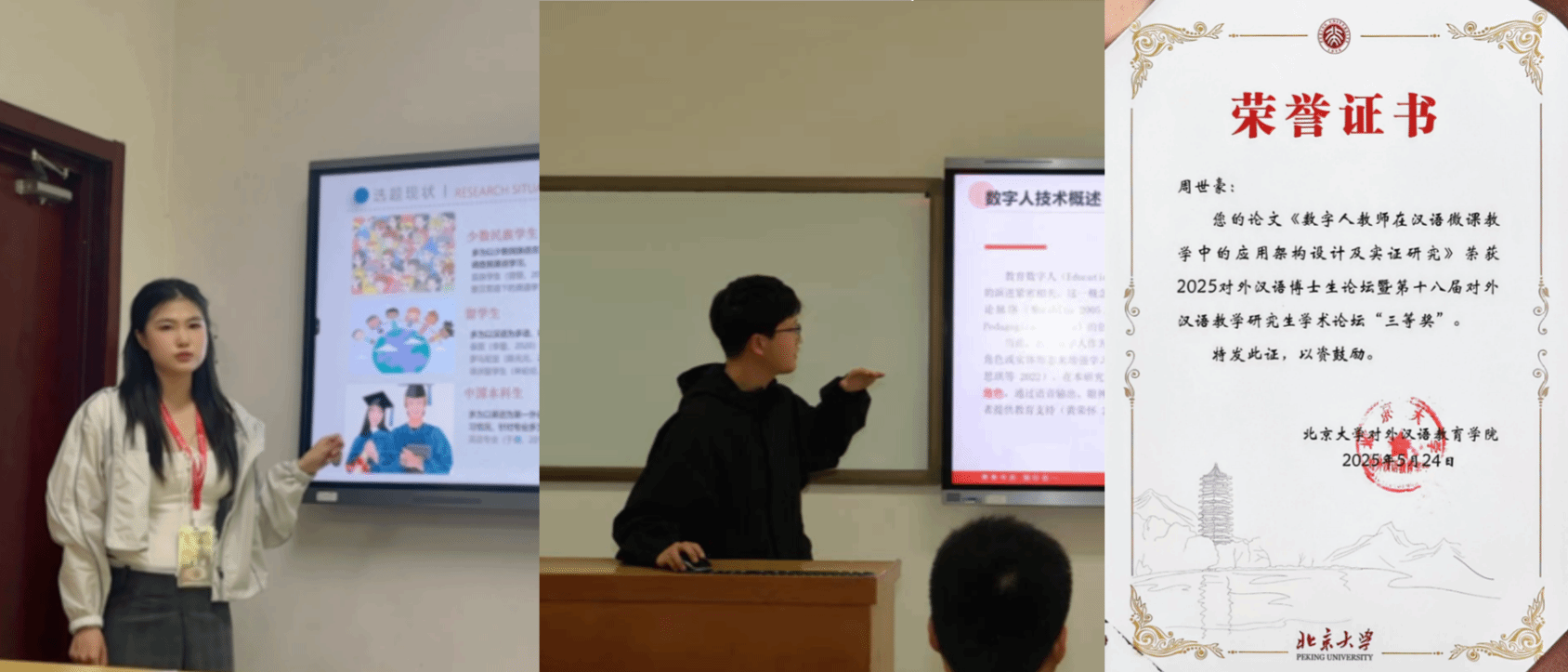 刘玉屏教授与3名硕士研究生、2名本科生受邀参与此次学术交流活动。其中2024级硕士研究生周世豪荣获第十八届对外汉语教学研究生学术论坛“三等奖”。
