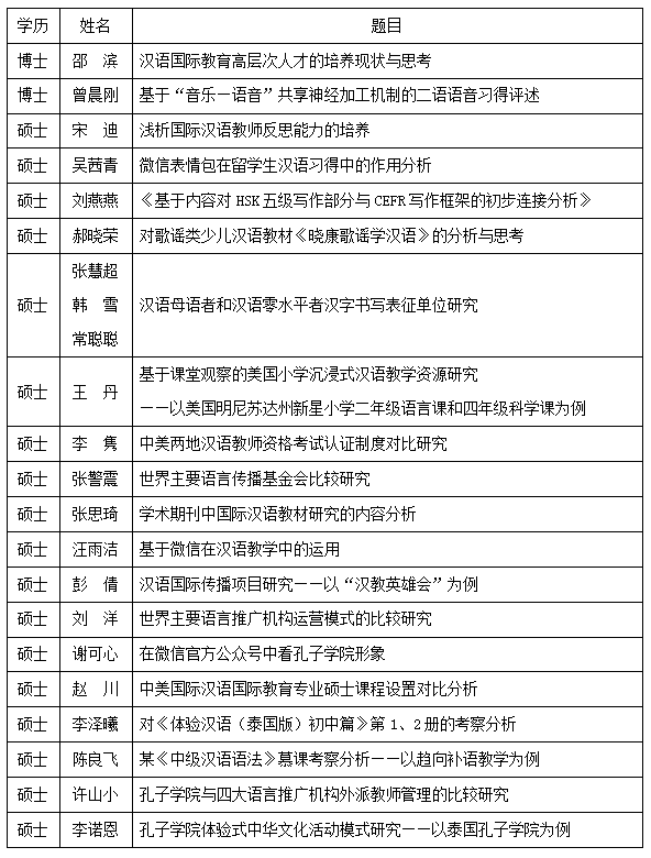 有博士研究生2人、硕士研究生20人共计22人、20篇论文入选。入选情况如下: