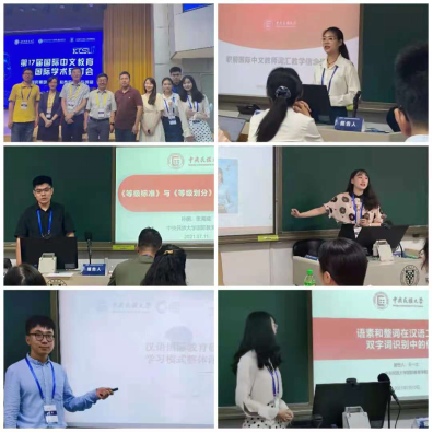 江傲霜副教授主持了“汉语国际教育发展”分组报告,并汇报了“汉语国际教育本科专业创新人才培养模式探索——以中央民族大学为例”;张海威副教授受邀主持了“教学法”组的分组报告。在“国别中文传播与教学”分组报告中,博士研究生贺莉娜、龚漫分别介绍了韩国与意大利中文教学资源的发展情况,博士研究生雷歌介绍了塞尔维亚中文教育的发展与制约因素及对策。在“教材与国别汉语传播研究”分组报告中,博士研究生李晓露、刘帅奇分别就北欧五国中文教育发展与印度尼西亚的中文教学资源建设做了学术报告。在“二语习得”分组报告中,硕士研究生王一土汇报了“语素和整词在汉语二语者双字词识别中的作用研究”。在“汉语国际教育的发展研究”分组报告中,硕士研究生王一凡和张亚琦汇报了“职前国际中文教师词汇教学信念研究”。在“测试与标准研究”分组报告中,博士研究生肖媛汇报了“基于证据观的医学汉语水平考试(MCT)效度研究”,硕士研究生孙鹏汇报了“《等级标准》与《等级划分》词汇收录差异研究”。在“教师研究”分组报告中,硕士研究生任彪汇报了“汉语国际教育硕士合作学习模式整体评估探究——以M大学为例”;在“教学法”分组报告中,硕士研究生徐小童汇报了“汉语微课交互性分析与思考”,本科生张博宇的“基于产出导向法的线上汉语教学迁移研究:以非目的语环境下泰国中级水平学习者为例”亦入选此分组报告。