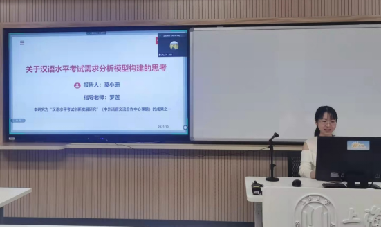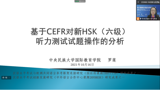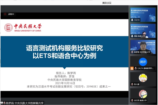 罗莲老师主持了“语言标准及其应用”分组报告。她的报告题目为“基于CEFR对新HSK六级听力测试试题操作的分析”。该研究基于欧洲共同语言参考框架中的听读详表,对现有HSK(六级)听力试题的认知操作进行了分析,并提出了改进建议。在“教育评价改革与语言测评”分组报告中,硕士研究生陈梦雨做了题为“语言测试机构考试服务比较研究:以EST和语合中心为例”的报告。该研究基于企业营销服务理论,以ETS和语合中心为例,对语言测试机构的服务进行了比较研究。在“汉语测评”分组报告中,硕士研究生莫小珊做了题为“关于汉语水平考试需求分析模型构建的思考”的报告,提出汉语水平考试需求分析可以从基本信息、语言信息与专业信息、差距分析、对现有的汉语水平考试满意度、对汉语水平考试的期望、对考试资源的需求、政策分析七个维度采集和分析数据,以期为汉语水平考试的研发和改进提供需求分析的方向。报告体现了众赢国际版