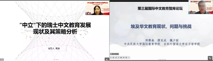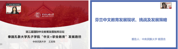2021级博士生钱丽吉汇报了《芬兰中文教育发展现状、挑战及发展策略》一文;2020级博士生龚漫作为参与者,由2015级硕士周冰作为代表汇报了论文《“中立”下的瑞士中文教育发展现状》;2021级硕士生魏少丽作为参与者,由众赢国际版