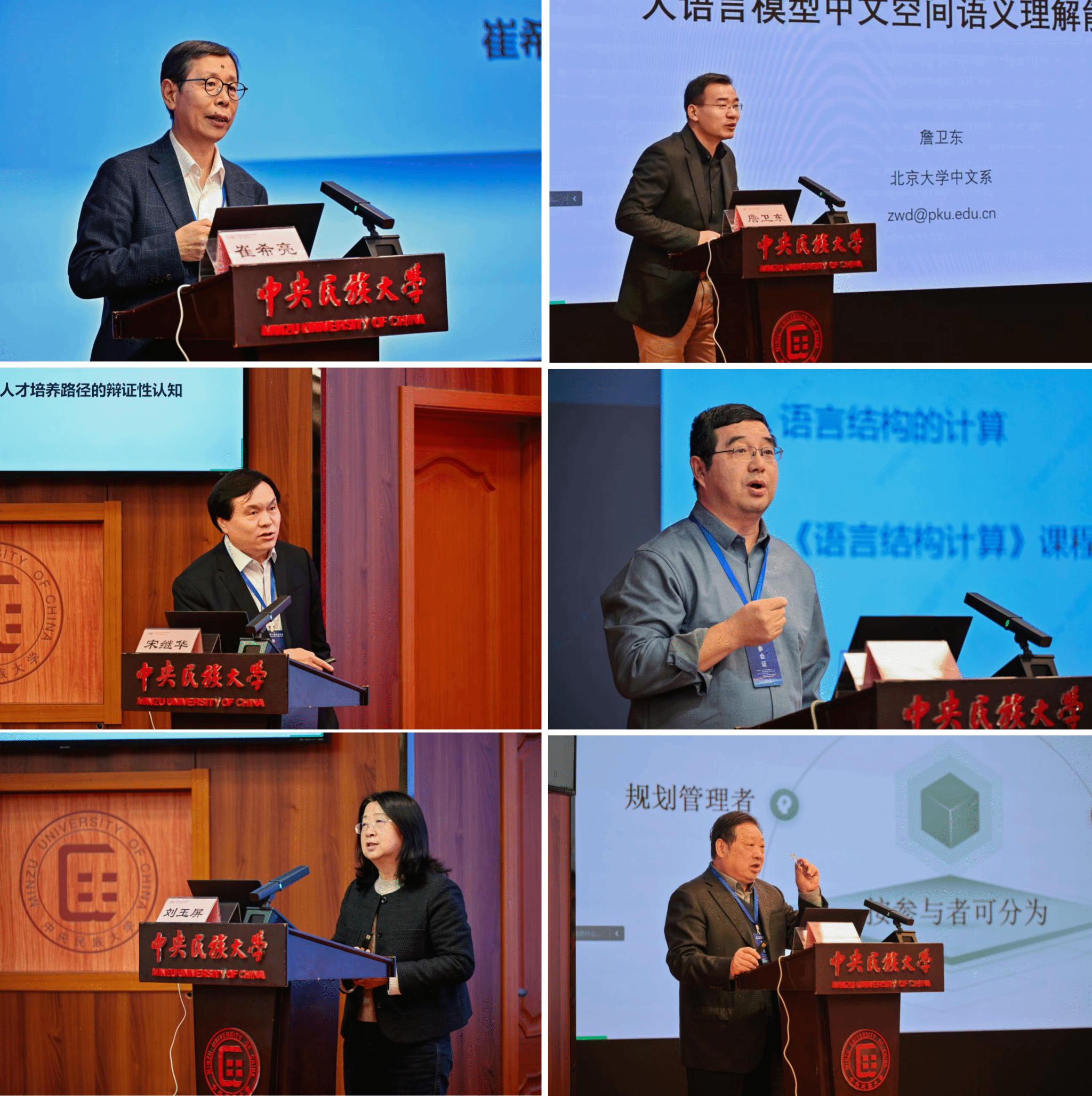 北京市语言学会理事长、北京语言大学崔希亮教授,北京大学詹卫东教授,北京师范大学宋继华教授,北京语言大学荀恩东教授,中央民族大学刘玉屏教授和北京语言大学李宇明教授,先后以《大语言模型与语言研究》、《大语言模型中文空间语义理解能力研究》、《技术助力语言深度认知的策略研究》、《语言机构计算》、《生成式人工智能在汉语教学微课制作中的应用研究》和《倾力汇聚国际中文教育数据》为题作主旨报告。