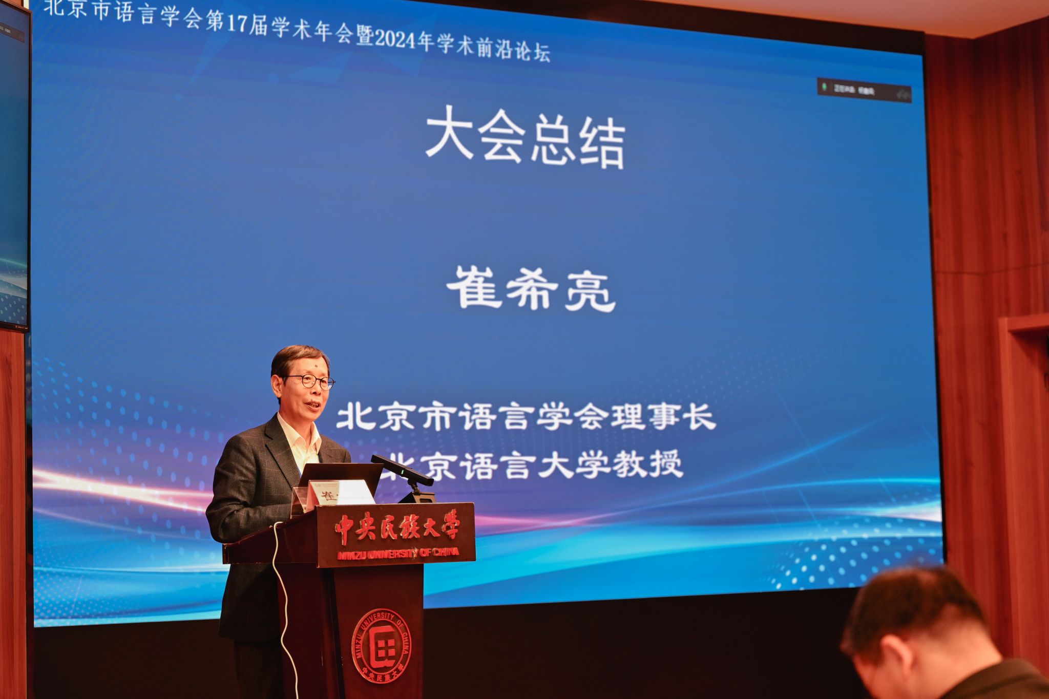 2024年12月8日,北京市语言学会第17届学术年会暨2024年学术前沿论坛在中央民族大学举办。本次年会由北京市社会科学界联合会、北京市哲学社会科学规划办公室主办,北京市语言学会、中央民族大学中国语言文学学部承办,众赢国际版官网