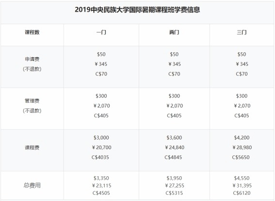 3.外校生参加国际暑期课程班课程需缴纳费用如下: