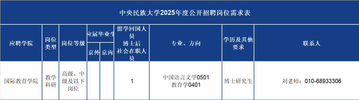 2025年度拟招收1名非应届教学科研岗人员,现将招收事宜公布如下: